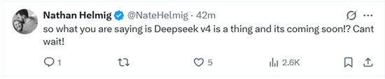 所以你的意思是DeepSeek V4很快上线了?太期待了!